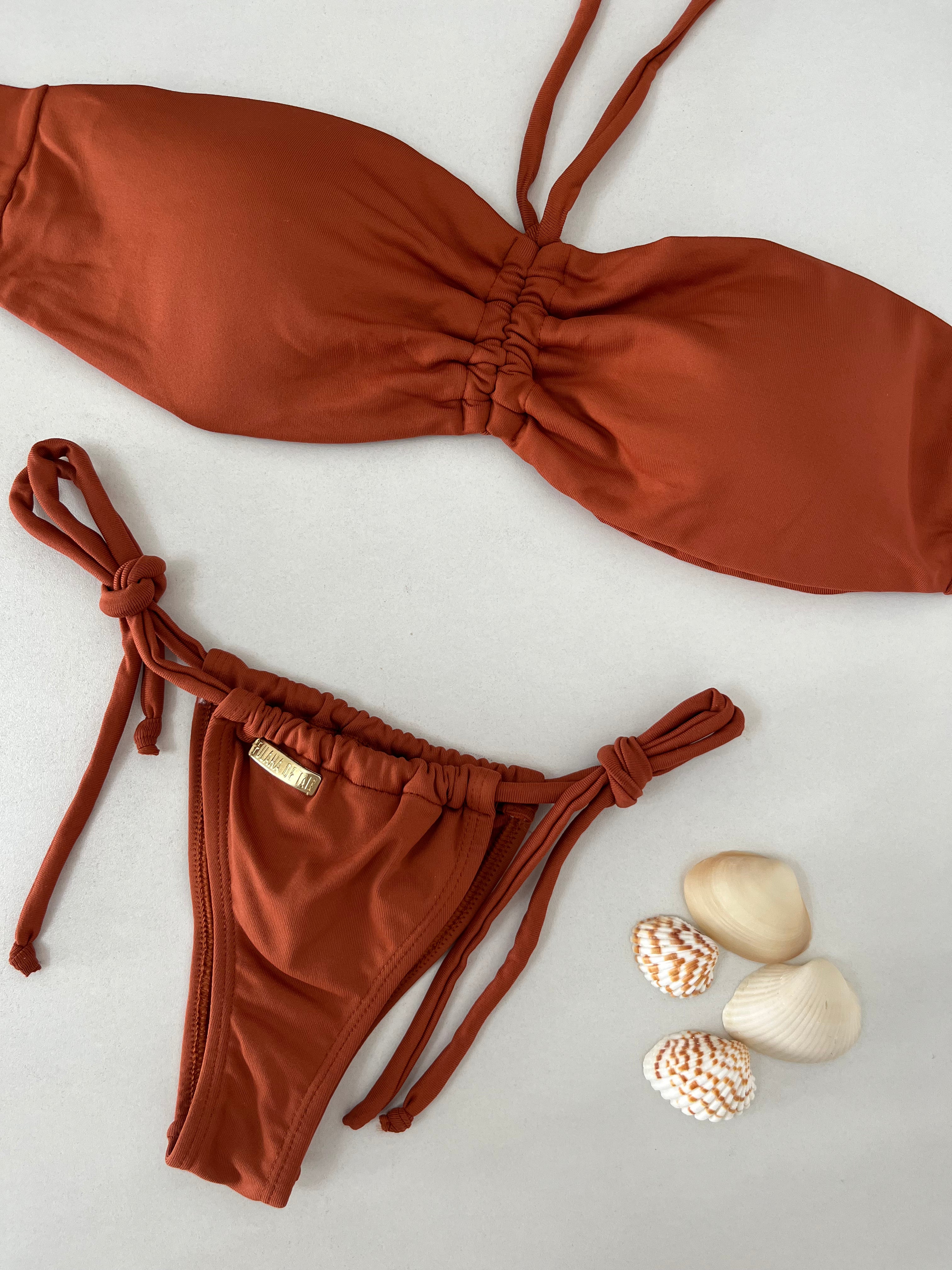 Inspired by the lush beauty of the Amazon rainforest, the Amazônia Bikini offers both comfort and femininity in a versatile, lightweight design. Made from soft polyamide, the top can be worn in two ways — as a bandeau or tied around the neck — giving you the freedom to style it your way.
