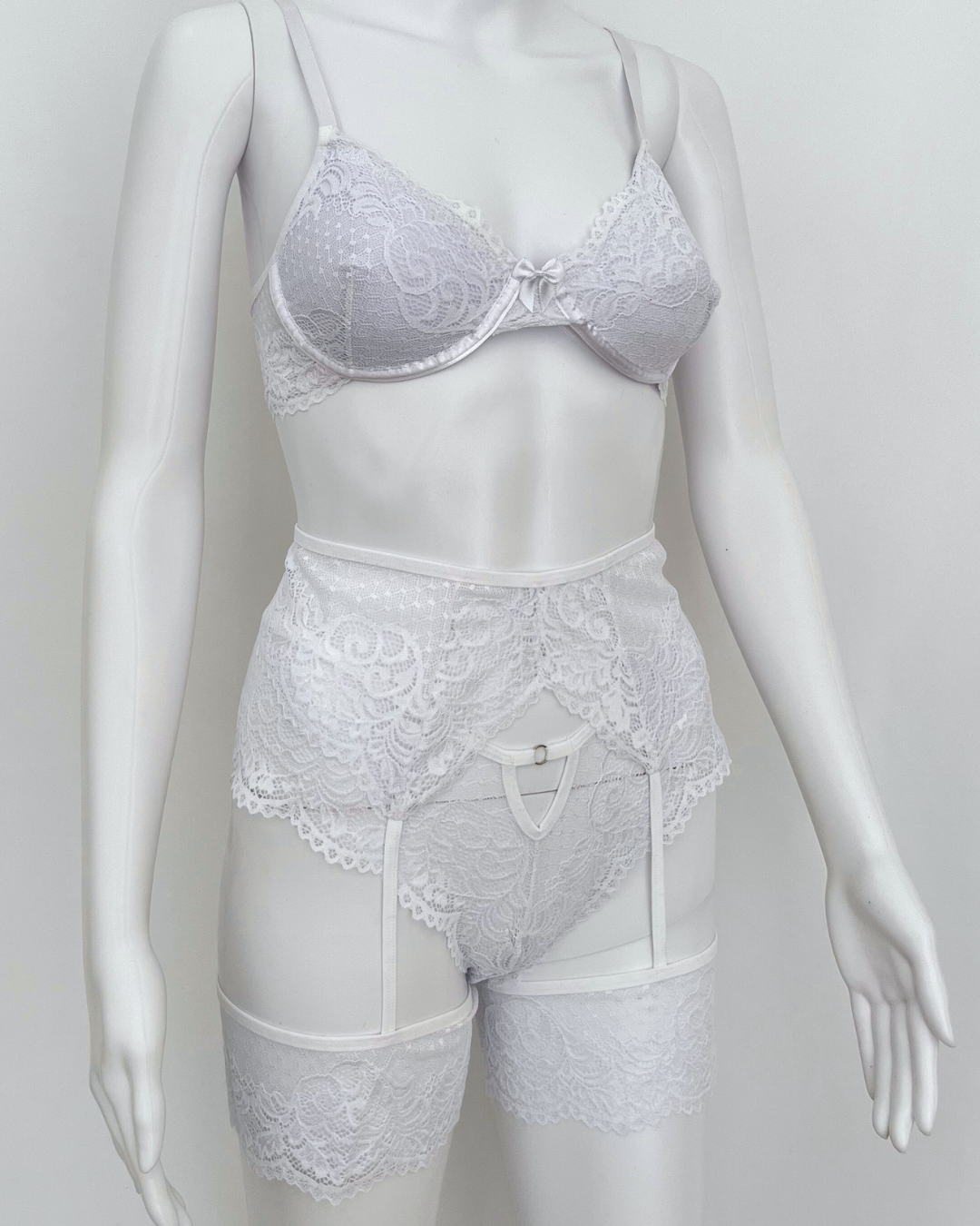 A luxurious elegance begins in Lingerie Set Adriele, adorned by a soft lace and complemented by details in ribbons this set is truly sensual and elegant. Imported lace, elastane.